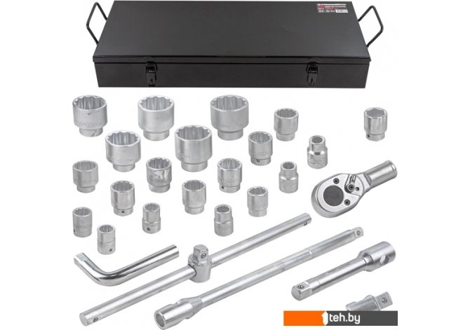 | Комплектация | Инструменты в наборе трещотка (1 шт.), ключ гаечный (2 шт.) Доп. комплектация кейс (металлический) Оснастка головки (19 шт.), удлинители (2 шт.), кардан (1 шт.) Головки торцевые шестигранные (7 шт.), торцевые двенадцатигранные (12 шт.) Торцевые шестигранные головки 1? (55, 60, 65 мм), 3/4? (38, 41, 46, 50 мм) Удлинители 3/4? Кардан 3/4? |