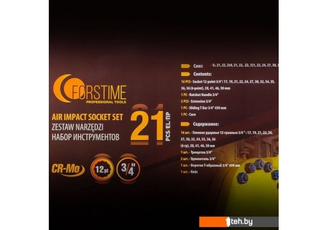Если хотите купить набор инструментов Forstime FT-6212-9MPB (21 предмет) то следует уточнить все параметры и габариты модели перед покупкой. Представленые характеристики на сайте 1teh.by могут отличаться от действительных или указанных производителем. Описание, фото товара и технические характеристики представлены для справки.