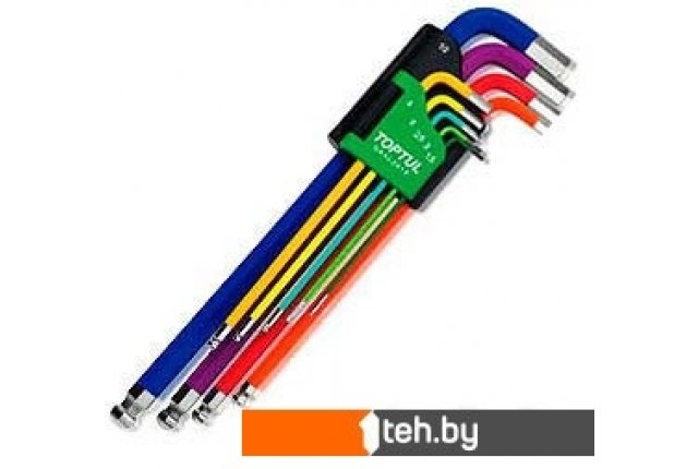 | Информация | Набор состоящий из 9 цветных Г-образных длинных шестигранных ключей с шаром. |