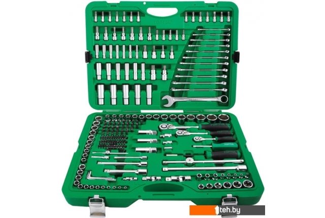 | Комплектация | Головка торцевая 1/4 дюйма (4, 4.5, 5, 5.5, 6, 7, 8, 9, 10, 11, 12, 13, 14 мм) Головка торцевая 3/8 дюйма (10, 11, 12, 13, 14, 15, 16, 17, 18, 19 мм)Головка торцевая 1/2 дюйма (10, 11, 12, 13, 14, 15, 16, 17, 18, 19, 20, 21, 22, 24, 27, 30, 32 мм)Головка торцевая длинная 1/4 дюйма (4, 5, 6, 7, 8, 9, 10 мм)Головка торцевая длинная 3/8 дюйма (10, 11, 12, 13, 14, 15 мм)Головка торцевая длинная 1/2" (16, 17, 18, 19, 22 мм)Головка торцевая 1/4 дюйма TORX (E4, E5, E6, E7, E8)Головка торцевая 3/8 дюйма TORX (E10, E11, E12, E14, E16, E18)Головка торцевая 1/2 дюйма TORX (E20, E24)Трещетка 72 зуба 1/4, 3/8 и 1/2 дюймаКарданный шарнир 1/4, 3/8 и 1/2 дюймаВороток с плавающей головкой 115мм 1/4 дюйма и 1/2 дюймаВороток-отвертка 150 мм 1/4 дюймаУдлинители 50 мм и 100мм 1/4 дюймаУдлинитель 150мм 3/8 дюймаУдлинители 125 и 250 мм 1/2 дюймаГоловка с шлицевой насадкой 1/4 дюйма (6, 6.5, 8 мм)Головка с насадкой PH 1/4 дюйма (PH3, PH4)Головка с насадкой PZ 1/4 дюйма (PZ3, PZ4)Головка с насадкой TORX 1/4 дюйма (T25, T27, T30, T35)Головка с насадкой TORX 3/8 дюйма (T40-2шт., T45, T50) Головка с насадкой TORX 1/2 дюйма (T55, T60) Головка с насадкой TORX (с отверстием) 1/4 дюйма (T27, T30, T35) Головка с насадкой TORX (с отверстием) 1/4 дюйма (T40, T45, T50)Головка с насадкой HEX 1/4 дюйма (5.5, 6, 6.5, 7, 8 мм)Головка с насадкой SPLINE 3/8 дюйма (M5, M6, M8, M10)Насадка шлицевая для ударной отвертки 5/16 дюйма (6, 6.5, 8 мм)Насадка PH для ударной отвертки 5/16 дюйма (PH3, PH4)Насадка PZ для ударной отвертки 5/16 дюйма (PZ3, PZ4)Насадка TORX для ударной отвертки 5/16 дюйма (T25, T27, T30, T35, T40(2шт.), T45, T50)Насадка TORX (с отверстием) 5/16 дюйма (T27, T30, T35, T40, T45, T50) Насадка HEX для ударной отвертки 5/16 дюйма (5.5, 6, 6.5, 7, 8)Насадка SPLINE для ударной отвертки 5/16 дюйма (M5, M6, M8, M10)Набор бит для отвертки 1/4 дюйма: TORX (с отверстием) Т8-Т40, квадрат SQ1 Набор бит для отвертки 1/4 дюйма: шлиц 4-6.5мм, крест PH1-PH2, крест PZ1-PZ2, шестигранник 3-6Набор бит для отвертки 1/4 дюйма: 4 крыла 6-10мм, 3 крыла 1-3мм, звезда T8-T25 Набор бит для отвертки 1/4 дюйма: вилка 4-8мм, HEX (с отверстием) 3-6мм, SPLINE M5-M8, квадрат SQ2Головка свечная 3/8 дюйма (18 мм)Головка свечная 1/2 дюйма (16 и 21мм)Держатель бит 1/4 дюйма х 1/4 дюймаДержатель бит 3/8 и 1/2 дюйма х 5/16 дюймаМагнитная отвертка - держатель бит 1/4 дюймаКлюч комбинированный (8, 10, 11, 12, 13, 14, 15, 16, 17, 18, 19, 22мм) Ключ шестигранный Г-образный (1.27, 1.5, 2, 2.5, 3, 4, 5) |
