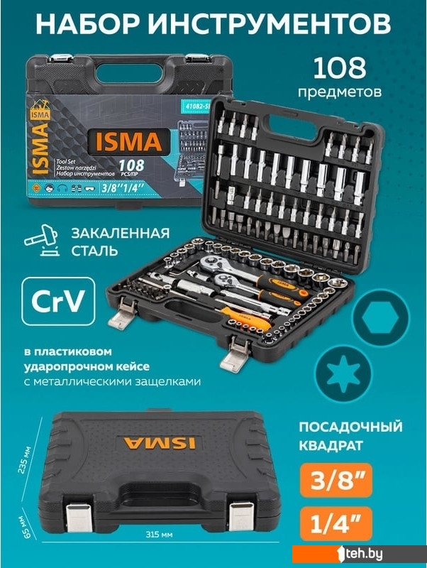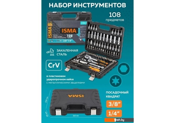 Если хотите купить набор инструментов ISMA ISMA-41082-5DS (108 предметов) то следует уточнить все параметры и габариты модели перед покупкой. Представленые характеристики на сайте 1teh.by могут отличаться от действительных или указанных производителем. Описание, фото товара и технические характеристики представлены для справки.