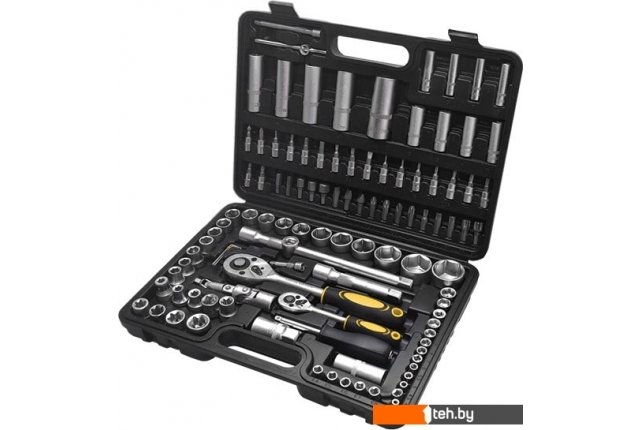 | Комплектация | Торцевая головка квадрат 1/4" (4, 4.5, 5, 5.5, 6, 7, 8, 9, 10, 11, 12, 13, 14мм) TORX E4, Е5, Е6, Е7, Е8) - 18шт. Торцевая головка глубокая квадрат 1/4" (6, 7, 8, 9, 10, 11, 12, 13 мм) - 8 шт. Торцевая головка квадрат 1/2" (10, 11, 12, 13, 14, 15, 16,17, 18, 19, 20, 21, 22, 24, 27, 30, 32 мм, TORX Е10, Е11, Е12, Е14, Е16, Е18, Е20, Е24) - 25шт. Торцевая головка глубокая квадрат 1/2" (14, 15, 17, 19,22 мм) - 5шт. Голока квадрат 1/4" со вставками (SL4, SL5.5, SL6.5, PH1, PH2, PZ2, HEX3, HEX4, HEX5, HEX6, T8, Т10, Т15, Т20, Т25, Т27, Т30) - 8 шт. Свечная головка квадрат 1/2" 16мм - 1шт. Свечная головка квадрат 1/2" 21мм - 1 шт. Удлинитель 2" квадрат 1/4" - 1 шт. Удлинитель 4" квадрат 1/4" - 1шт. Удлинитель 5" квадрат 1/2" - 1 шт. Удлинитель 10" квадрат 1/2" - 1 шт. Переходник для удлинителя 250мм квадрат 1/2" - 1шт. Карданный шарнир для торцевой головки квадрат 1/4" - 1 шт. Карданный шарнир для торцевой головки квадрат 1/2" - 1 шт. Рукоятка с трещеткой квадрат 1/4" с быстрым сбросом - 1 шт. Рукоятка с трещеткой квадрат 1/2" с быстрым сбросом - 1 шт. Рукоятка для торцевых головок квадрат 1/4" - 1 шт. Т-образный вороток квадрат 1/4" - 1 шт. Бита 30мм (SL8, SL10, SL12, Т40, Т45, Т50, Т55, Т60, РН3, РН4, РZ4, HEX7, HEX8, HEX10, HEX12, HEX14) 17шт.Шестигранный ключ - 3шт. |