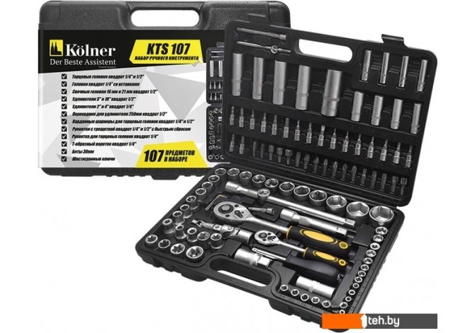 Фотографии, описание и технические характеристики модели набора Kolner KTS107 (107 предметов) взяты из открытых источников, официального сайта производителя или представительства Kolner в Республике Беларусь.