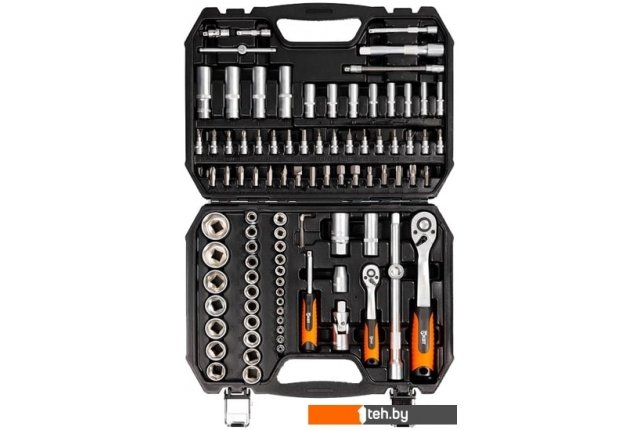 | Комплектация | КОМПЛЕКТ 1/2"Головки торцевые шестигранные: 10; 11; 12; 13; 14; 15; 16; 17; 18; 19; 20; 21; 22; 23; 24; 27; 30; 32 ммГоловки торцевые удлиненные: 14; 15; 17; 19 ммГоловки свечные: 16; 21 ммУниверсальный шарнир Ключ-трещотка , 72 зубцаУдлинитель: 125; 250 ммАдаптер для удлинителя 3/8? (F) х 1/2? (М)Обойма-держатель для битБиты 30 мм: Т40, Т45, Т50, Т55 / PH: 3; 4 / PZ: 3; 4 / FD (SL): 8; 10; 12 / HEX: 8; 10; 12; 14 ммКОМПЛЕКТ 1/4"Головки торцевые шестигранные: 4; 4.5; 5; 5.5; 6; 7; 8; 9; 10; 11; 12; 13; 14 ммГоловки торцевые удлиненные : 6; 7; 8; 9; 10; 11; 12; 13 ммКлюч-трещотка, 72 зубцаВороток Т-образный 115 ммУниверсальный шарнир Удлинитель: 50; 100 ммВороток отверткаГибкий удлинительБиты 30 мм: Т8; Т10; Т15; Т20; Т25; Т30 / PH: 1; 2 / PZ: 1; 2 / FD (SL): 4; 4.5; 5; 7 / HEX: 3; 4; 5; 6 ммКлючи торцевые шестигранные: 1.5; 2; 2.5 ммПластиковый кейс |