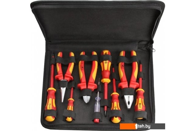 | Комплектация | - диэлектрические пассатижи ПРОФИ 180 мм- диэлектрические бокорезы ПРОФИ 160 мм- диэлектрические длинногубцы ПРОФИ 160 мм- диэлектрическая отвертка: шлиц 3х75- диэлектрическая отвертка: шлиц 4х100- диэлектрическая отвертка: шлиц 5.5х125- диэлектрическая отвертка: PH1x100- диэлектрическая отвертка: PH2x100- отвертка-индикатор |