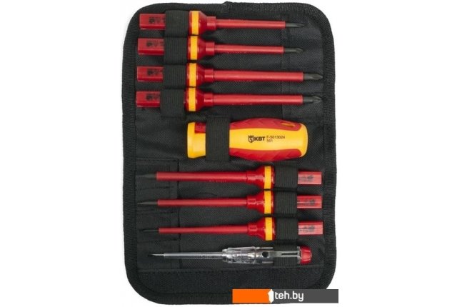 | Комплектация | - Диэлектрическая бита: шлиц 3.0х100- Диэлектрическая бита: шлиц 4.0х100- Диэлектрическая бита: шлиц 5.5х100- Диэлектрическая бита: PH1х80- Диэлектрическая бита: PH х100- Диэлектрическая бита: PZ1х80- Диэлектрическая бита: PZ2х100- Тестер напряжения 110–250 В- Диэлектрическая рукоятка для сменных бит |