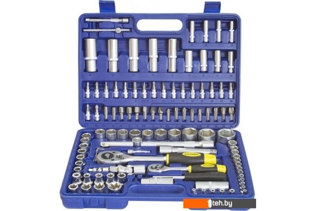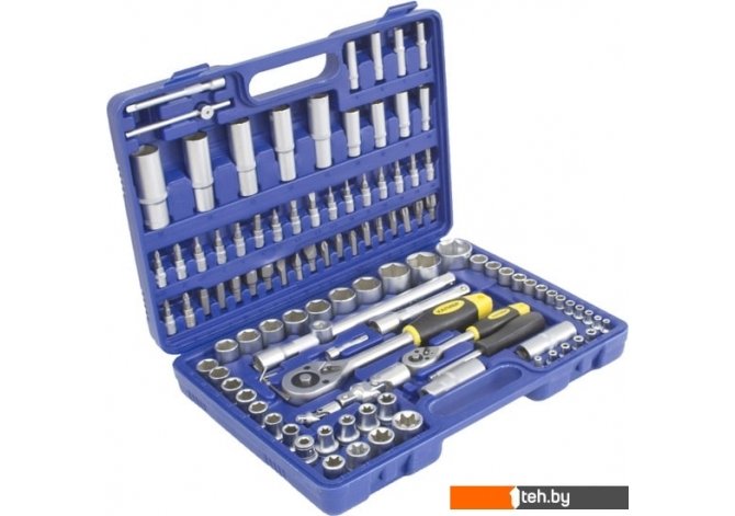 | Информация | Универсальный набор инструмента из 108 предметов, изготовленный из CrV стали с покрытием, защищающим предметы в наборах от коррозии.Большое количество насадок, переходников и удлинителей для самых разных задач. |
