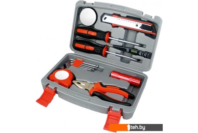 | Комплектация | Набор из 13 инструментов: - 1 шт. нож; - 2 шт. отвертка; - 1 шт. метровая рулетка (1 м); - 1 шт. индикатор фазы; - 1 шт. плоскогубцы длинные; - 5 шт. шестигранный ключ; - 1 шт. фонарик; - 1 шт. изоляционная лента; В пластиковом кейсе |