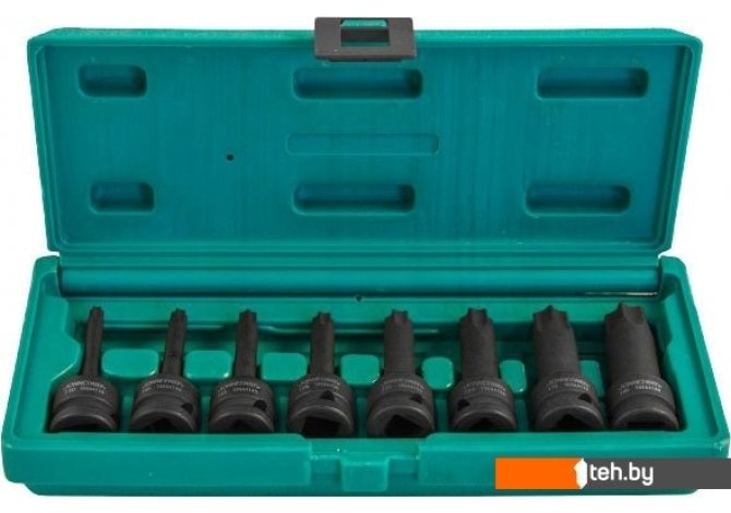 | Комплектация | Ударные насадки TORX (шестигранник), 8 шт.: Т30, Т40, Т45, Т50, Т55, Т60, Т70, Т80. |