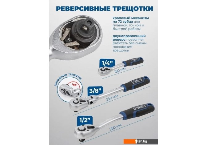 | Трещотка | Да 3 (1/2", 3/8", 1/4") |