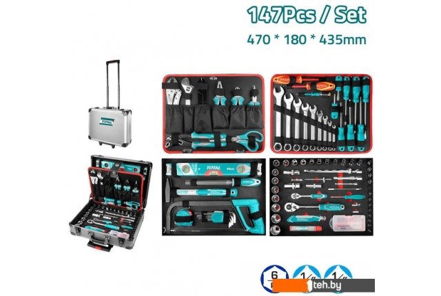 Если хотите купить набор инструментов Total THKTHP21476 (147 предметов) то следует уточнить все параметры и габариты модели перед покупкой. Представленые характеристики на сайте 1teh.by могут отличаться от действительных или указанных производителем. Описание, фото товара и технические характеристики представлены для справки.