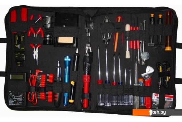 | Комплектация | - Антистатический браслет;- Пинцет на разжим, длина 115 мм;- Провод для удаления припоя;- Разводной ключ, длина 155 мм, раздвигается до 19 мм;- Припой в пластиковом футляре;- Пробник для тестирования напряжения 110-220 В, длина 140 мм;- Отвертка плоская: намагниченное жало, длина без ручки - 150 мм, диаметр жала - 5 мм;- Отвертка плоская: намагниченное жало, длина без ручки - 100 мм, диаметр жала - 3 мм;- Отвертка плоская: намагниченное жало, длина без ручки - 75 мм, диаметр жала - 2.4 мм;- Отвертка крестовая: намагниченное жало, длина без ручки - 150 мм, диаметр жала - 5 мм;- Отвертка крестовая: намагниченное жало, длина без ручки - 100 мм, диаметр жала - 3 мм;- Отвертка крестовая: намагниченное жало, длина без ручки - 75 мм, диаметр жала - 2.4 мм;- Футляр для мелких деталей, длина 135мм, диаметр 21 мм;- Приспособление для вставки DIP-микросхем (инсертер): длина 104 мм. Размер рабочей поверхности 34 мм*15 мм;- Приспособление для вставки DIP-микросхем (инсертер): длина 100 мм. Размер рабочей поверхности 20 мм*7 мм;- Зеркало на ручке: длина ручки 185 мм, диаметр зеркала 32 мм;- Кисточка с металлической щетиной и стамеска: общая длина 180 мм;- Прямое шило и держатель: общая длина 180 мм;- Изогнутое шило и стамеска: общая длина: общая длина 180 мм;- Кисточка: длина 160 мм, диаметр 17 мм;- Приспособление для вытаскивания DIP-микросхем (экстрактор): длина 104 мм;- Приспособление для вытаскивания PLCC-микросхем (экстрактор): длина 100 мм, ширина 49 мм;- Пинцет с 3-мя зубцами, длина 118 мм;- Удлинитель для накидных головок, длина 75 мм;- Удлинитель к насадкам, длина 60 мм;- Отсос для припоя: длина 200 мм, диаметр 20 мм;- Фонарик: длина 142 мм;- Реверсивная отвертка;- Подставка под паяльник с держателем;- Инструмент для разделки кабеля;- Пассатижи, длина 133 мм;- Кусачки, длина 112 мм;- Набор насадок: Плоская: 3мм, 5мм, 7мм. Крестовая: 3 мм, 5 мм, 7 мм, Звездочкой: менее 2 мм, 2 мм, 2.4 мм, 2.9 мм. Шестигранник: 1.5, 2.0, 2.5, 3.0, 4.0, 5.0, 6.0 мм. U-тип: 3.5 мм, 4.6 мм, 5 мм, 6.2 мм;- Накидные головки: 5 мм, 6 мм, 7 мм, 8 мм, 9 мм, 10 мм, 11 мм;- Переходник на накидные головки. |