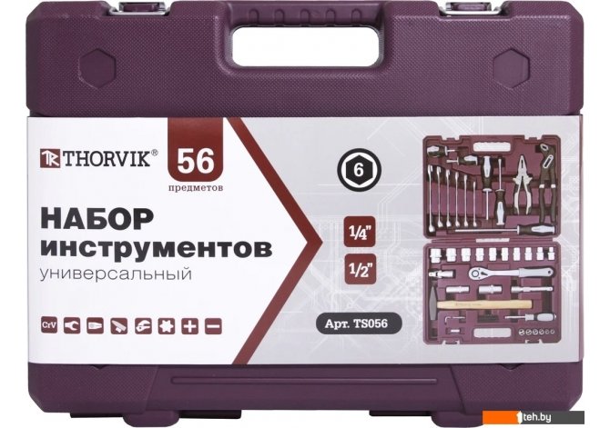 Если хотите купить набор инструментов Thorvik TS056 (56 предметов) то следует уточнить все параметры и габариты модели перед покупкой. Представленые характеристики на сайте 1teh.by могут отличаться от действительных или указанных производителем. Описание, фото товара и технические характеристики представлены для справки.