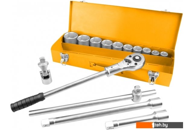 | Комплектация | Головки: 22, 24, 27, 30, 32, 36, 38, 41, 46, 50 мм Удлинители: 200, 400 мм Кардан: 3/4? T-образный (450 мм) |