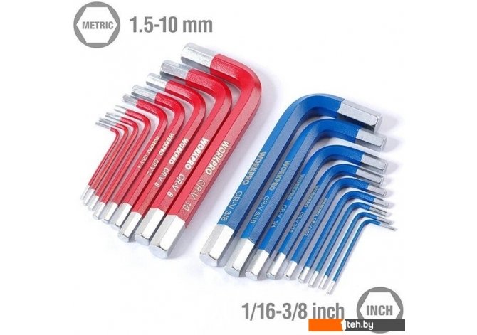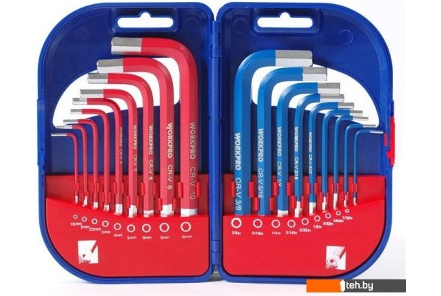 | Комплектация | • 9 шт. Метрические: 1,5,2,2,5,3,4,5,6,8,10 мм. • 9 шт. SAE: 1/16", 5/64", 3/32", 1/8", 5/32", 3/16", 1/4", 5/16", 3/8" |