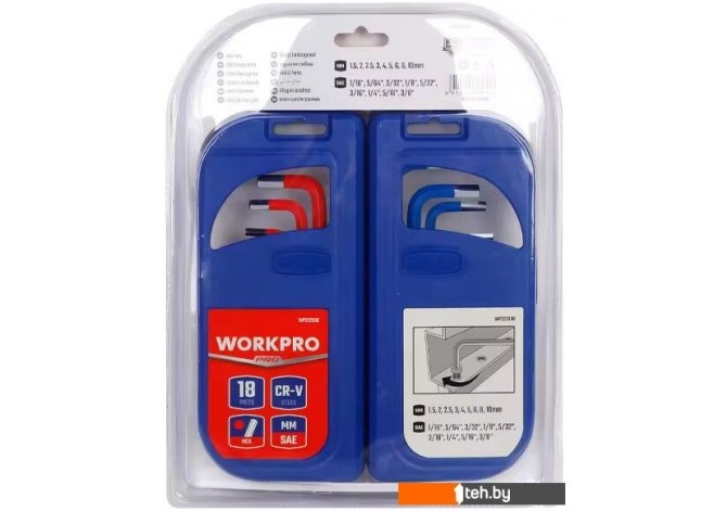 | Комплектация | • 9 шт. Метрические: 1,5,2,2,5,3,4,5,6,8,10 мм. • 9 шт. SAE: 1/16", 5/64", 3/32", 1/8", 5/32", 3/16", 1/4", 5/16", 3/8" |