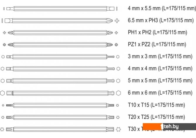 | Комплектация | Отвертки с наконечниками типа Slotted, Philips, Pozidriv, Hex, Torx |