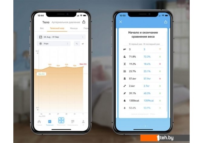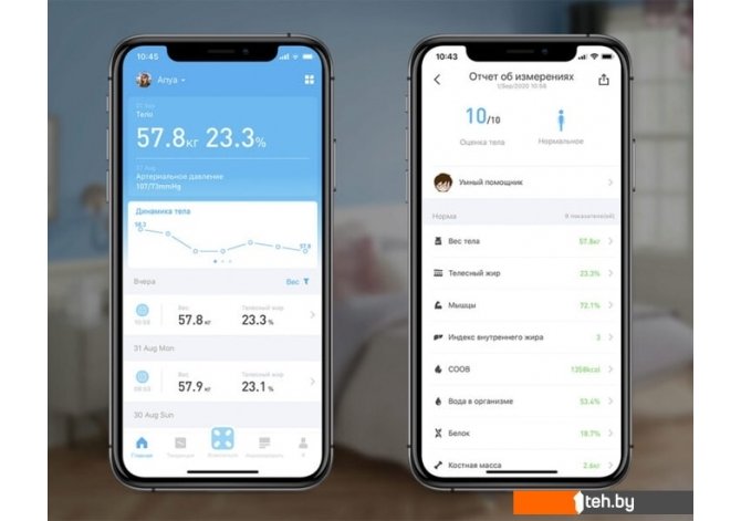 | Функциональные особенности | расчет доли воды, расчет доли жировой ткани, расчет доли мышечной ткани, расчет доли костной ткани, расчет ИМТ (BMI), расчет уровня белка, расчет биологического возраста, пульс (в приложении) |