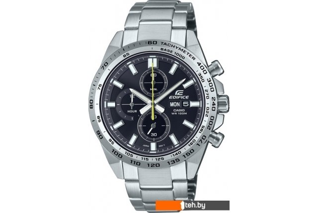 | Информация | Сделайте динамичное и смелое заявление — классический хронограф EDIFICE со спортивным дизайном. Секундная стрелка имеет центральную линию зеленого цвета, выделяющуюся на фоне циферблата, с указателем дня недели и даты для удобного использования. |