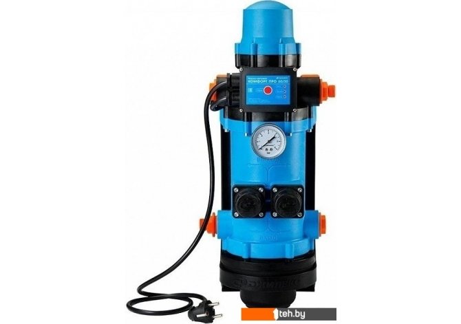 | Информация | Электрический поверхностный центробежный насос-автомат для воды «КОМФОРТ ПРО» разработан для создания бесперебойного водоснабжения коттеджей, дач, ферм и других потребителей. Области применения Используется для подачи чистой воды из: магистральных трубопроводов; открытых водоемов; скважин; колодцев. Технические характеристики Расходно-напорные характеристики насосов-автоматов зафиксированы в названии с помощью буквенно-цифрового индекса. В названии модели «КОМФОРТ ПРО» 60/30: «КОМФОРТ ПРО» — название серии. Первая часть цифрового индекса «60» — максимальная производительность в литрах в минуту (60 л/мин). Вторая часть – «30» — индекс максимального напора в метрах, в данном случае — 25м. |