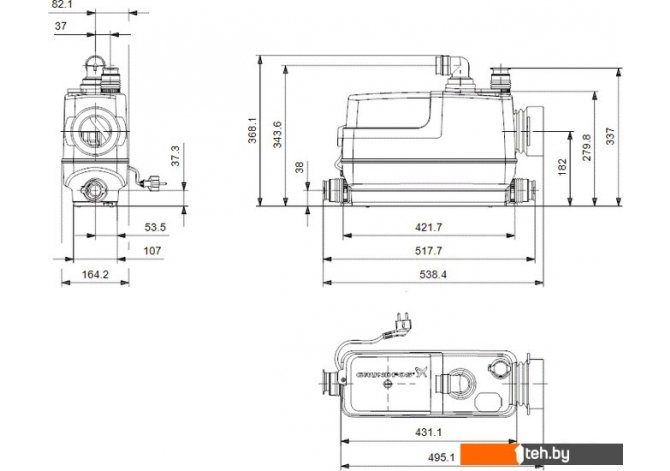 | Информация | Sololift2 CWC-3 представляет собой автоматическую компактную насосную установку, предназначенную для откачки сточных вод из жилых помещений, где они не могут отводиться в канализацию самотеком. |