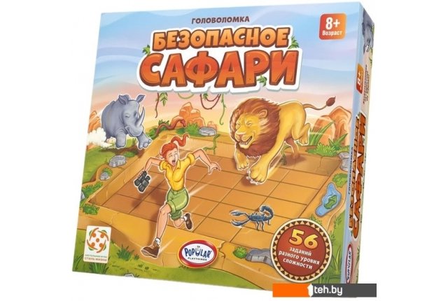 | Информация | ? Настольная игра Popular Playthings Безопасное сафари / БП-00004493 приглашает вас отправиться в бескрайнюю саванну, где вас ждут 56 приключений на сафари. ? С помощью шести пластмассовых фигурок животных и игрового поля участники настольной игры Безопасное сафари попробуют справиться с 56-ю заданиями различных уровней сложности. ? В каждом задании игрокам необходимо расставить Рут и животных на поле так, чтобы все они оказались в безопасности и не угрожали другим обитателям саванны. ? Если вам понравилась игра-головоломка Безопасное сафари, обратите внимание на другие головоломки серии. ?? В состав настольной игры Безопасное сафари входит: 1 игровое поле, 12 элементов головоломки: 6 фигурок животных (бегемот, гепард, лев, носорог, скорпион и слон), 5 фигурок камней и 1 фигурка искательницы приключений Рут, буклет с заданиями с инструкциями и решениями. |
