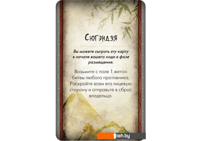 Комплектация | Игровое поле7 ширм кланов5 карт сюгэндзя10 карт разведки22 карты регионов10 карт инициативы1 карта первого игрока12 карт тайных целей189 жетонов битвы210 жетонов контроля15 жетонов мира15 жетонов выжженной земли11 особых жетоновЖетон раундаПравила игры |