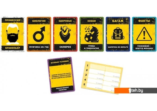 | Комплектация | 311 карт и блокнот для голосования в компактной коробке с удобным органайзером. |