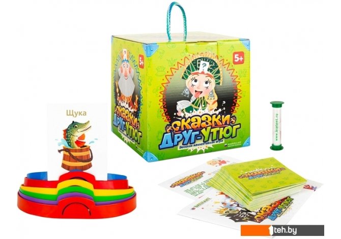 | Информация | Рады представить вам новую версию полюбившейся всем игры «Друг-утюг». Теперь — «СКАЗКИ»! На карточках изображены сказочные персонажи, существа и предметы. Цель игры остается прежней: выяснить за 60 секунд с помощью наводящих да-нет вопросов, кто ты, в то время как остальные игроки уже знают! |