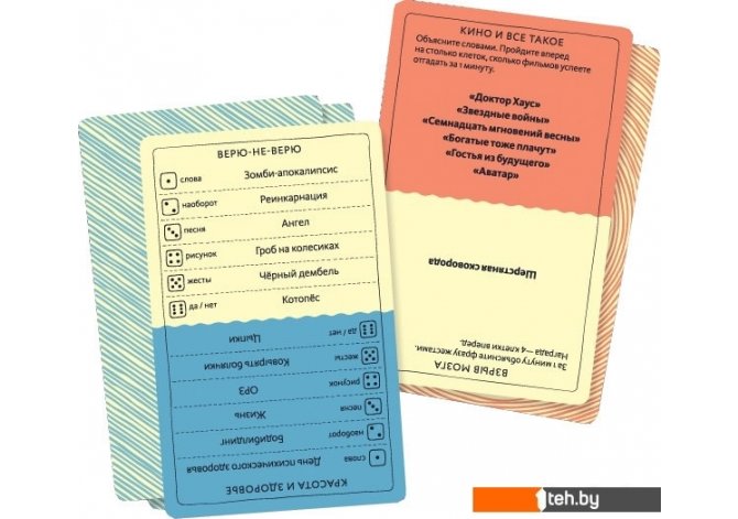 | Информация | В этой игре вам придется приложить все усилия, чтобы добиться взаимопонимания с другими игроками. А также продемонстрировать разнообразные таланты: артистичность, вокальные данные, ораторские способности и многое другое. Кидайте кубик, ходите фишками, тяните карточки со словами и объясняйте — тем способом, какой вам выпал. На кубике. |