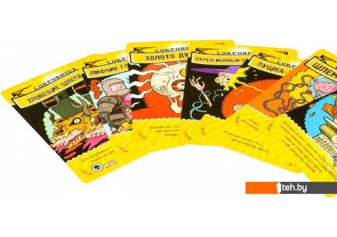 | Комплектация | 178 карт заклинаний, сокровищ и дохлых колдунов8 планшетов героев7 медалей недобитых колдунов6 черепушек для отсчёта жизней4 шестигранных кубика1 гора Черепламени и 2 подставкиПравила игры |