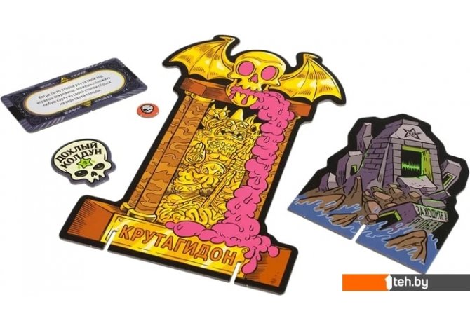 Комплектация | - 230 карт- 5 черепушек для отсчёта жизней- 8 жетонов колдунских свойств- 8 планшетов колдунов- 20 жетонов дохлых колдунов- Р’льех- Главный приз Крутагидона- Правила игры |