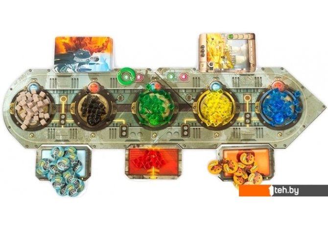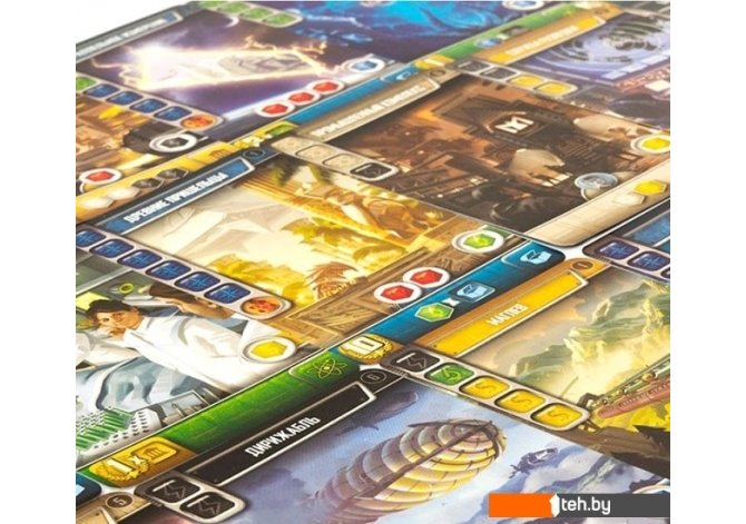 | Комплектация | • 5 частей игрового поля• 5 двусторонних карт Империй• 150 карт Развития• 170 кубиков Ресурсов (Материалы 35 , Энергия 30, Знания 30, Деньги 30, Открытия 30, Кристаллиум 15 )• 80 жетонов Лидеров (40 Генералов и 40 Финансистов )• жетон счётчика раундов• блокнот для подсчёта победных очков |