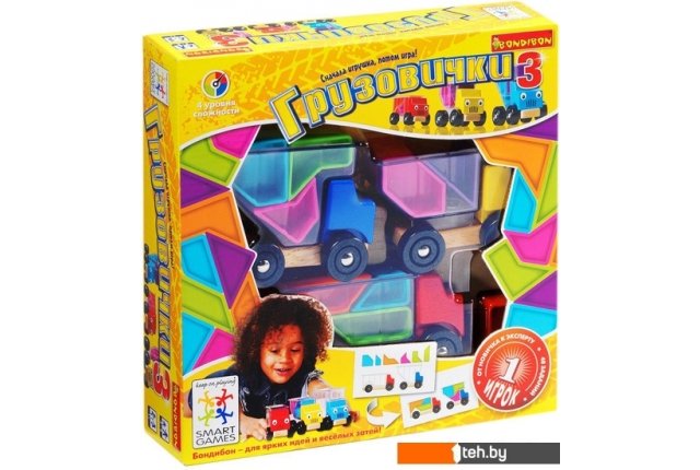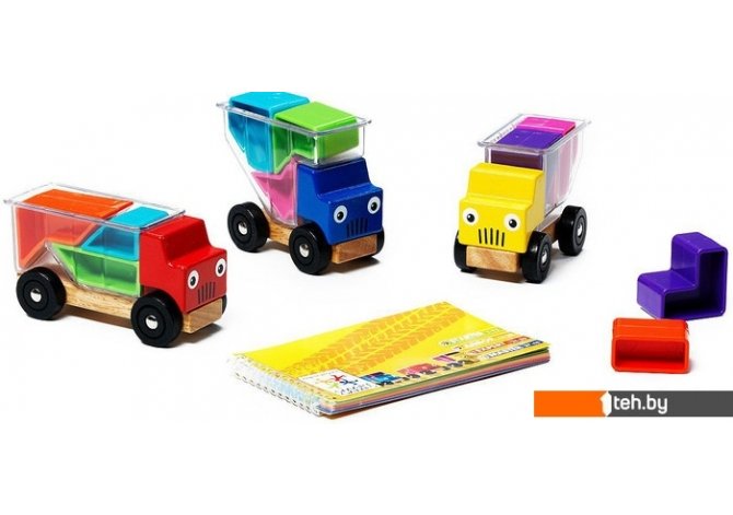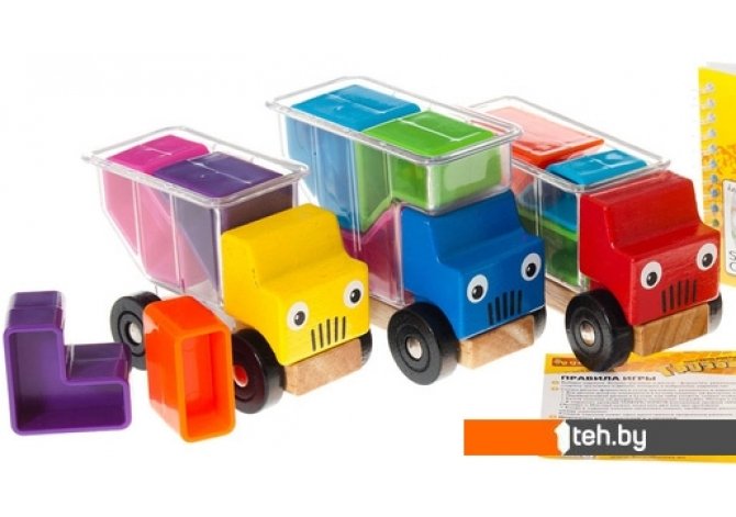 | Информация | Самый первый в жизни собственный грузовой автопарк. Кавалькада глазастых грузовичков отправляется в дальнее путешествие. Но как загрузить в прозрачный кузов все эти разноцветные детали причудливых форм, чтобы не осталось пустого места? Вот это задачка для юного автомобилиста! Малыши смогут просто играть с грузовичками, складывая и выкладывая детали-формочки, а дети постарше научатся выполнять задания этой головоломки, компактно заполняя кузова грузовичков. И очень может быть, что выполняя увлекательные задания по карточкам, Ваши юные «грузоперевозчики», даже не догадаются, что не просто играли, но решали сложные инженерные и логистические задачи. Над заданиями уровня "мастер" интересно поломать голову не только малышам, но и школьникам. |