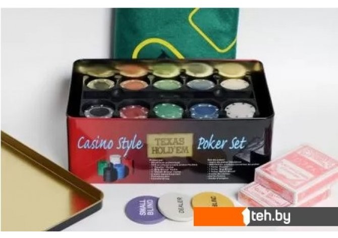 | Комплектация | металлический бокс; карты; фишки; сукно; игральные кости |