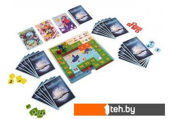 | Комплектация | игровое поле; 64 карты ассоциаций; 5 фигурок пегасов; 25 жетонов с номерами; 5 жетонов победных очков; правила игры |