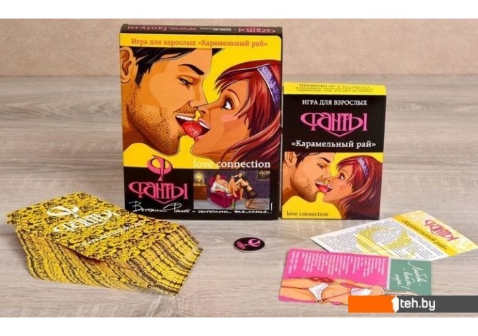 | Информация | Воплощение сладких желанийГоворят, что стоит попасть на удочку привычки — и прощай, супружеская любовь. А ведь это совсем не повод скандалить, менять партнёра или заводить интриги на стороне. «Стряхнуть пыль» с прежних отношений очень просто, играя в фанты «Карамельный рай». Веселая эротическая игра снова превратит супружескую спальню в райское местечко.Волшебный и загадочный ВостокНа Востоке всегда знали толк в любовных утехах. Но вам не придётся тратить время на поиски проверенных восточных рецептов страсти: многое уже предложено в этих фантах. Проникновенная, сладострастная близость, дополненная очарованием Востока и тайнами тантрического секса, позволит по-новому узнать любимого человека, добавив новых красок в интимные отношения.Фанты бывают разные: жёлтые или красныеНа самом деле фантов в игре четыре вида: белые, жёлтые, розовые и красные. Игроки втёмную выбирают фант, на обратной стороне которого написано задание. Игра начинается с простых заданий на белых фантах, цель которых развеселить и слегка возбудить партнёров. Дальше играют жёлтые фанты, а задания становятся более сексуальными. Продолжая игру, партнёры переходят к розовым и красным карточкам, всё более отдаваясь страстным порывам и удовлетворяя друг друга всевозможными способами.Формула сохранения любвиНовые удовольствия со старым партнёром — это лучшая возможность разнообразить личную жизнь без романов на стороне. Игра познакомит с новыми позами, заставит экспериментировать в постели и открывать в себе новые океаны нежности и любви. Задания в игре часто предлагают применение секс-игрушек, сексуального белья и интимной косметики. Долой стеснительность! Фанты «Карамельный рай» научат быть уверенным в себе и партнёре на сто процентов.Подарок, который оценят по достоинству:Молодожёны, только отрывающие для себя все тайны и прелести близких отношений;Постоянный партнёр, который совсем не прочь подлить масла в костёр любви;Сторонники активной жизни и любви, желающие добавить новизны в отношения и до конца раскрыть свой чувственный потенциал. |