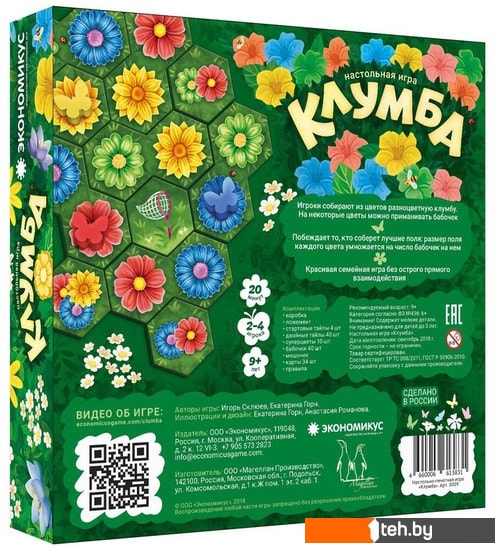 Фотографии, описание и технические характеристики модели настольной игры Экономикус Клумба взяты из открытых источников, официального сайта производителя или представительства Экономикус в Республике Беларусь.