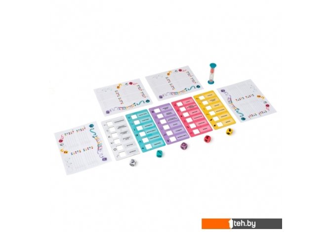 | Комплектация | • 10 планшетов слов • 10 уникальных кубиков • блокнот • песочные часы • правила |