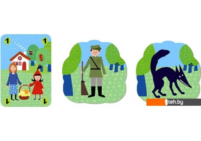 | Комплектация | 50 карт с яркими красивыми иллюстрациями (24 «сказочные» карты, 10 карт «волк», 8 карт «лес с охотником», 8 карт «лес с волком»), буклет-инструкция с правилами |