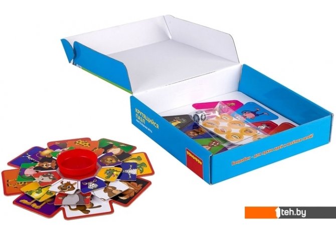 | Информация | Игра на тренировку памяти, способствует концентрации внимания и развитию зрительного восприятия. Также укрепляет социальное развитие. Игра на внимательность, сообразительность и скорость. Для младших детей данная игра является интересным способом изучения различных цветов и форм. По правилам игры игрокам необходимо найти картинки соответствующие игровому полю и карточке, таким образом набрав наибольшее количество колец за каждый правильный ответ. |