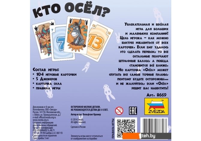 Фотографии, описание и технические характеристики модели настольной игры Звезда Кто осел? 8669 взяты из открытых источников, официального сайта производителя или представительства Звезда в Республике Беларусь.