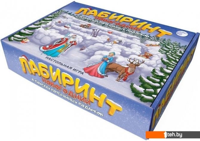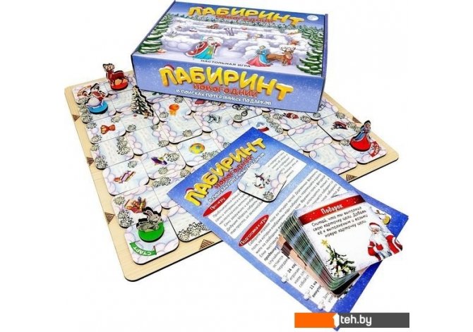 | Комплектация | - большое поле из деревянного материала - фрагменты лабиринта 3шт - фигурка играков 4шт - фигурка елки 1шт - карточки целей 24шт - карточки встреч 11шт - правила игры 1шт |