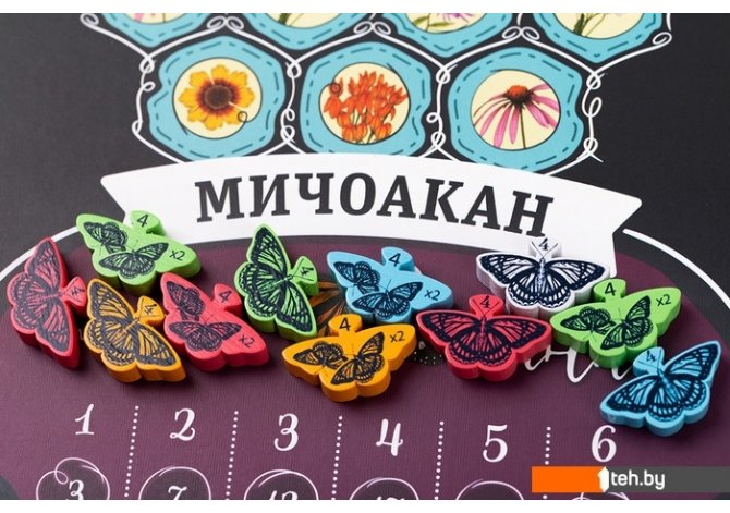 | Информация | «Марипосас» — неконфликтная семейная игра, в которой игрокам предстоит управлять миграцией своих бабочек из Мексики в Северную Америку в течение трёх сезонов: весной, летом и осенью. Каждый ход игроки будут перемещать своих бабочек, чтобы собрать нектар с цветов, выполнить задание или вывести следующее поколение. Преимущества игры • Богатая комплектация, удобный • Органайзер • Красочное оформление • Неконфликтная стратегия, подходящая и для игры в кругу семьи, и для серьезных игроков • Отличный подарок • Правила объясняются за 5 минут Кому подойдёт эта игра? • всем: семьям, молодёжи, опытным игрокам. • любителям бабочек, • любителям тактических, стратегических игр. Как играть Все игроки получают 2 карты полёта и фишки бабочек. Игра состоит из 3 сезонов (раундов): весна, лето и осень. В каждом раунде у игроков есть определённое количество ходов, за которые нужно выполнить одну или несколько целей, чтобы получить победные очки. В свой ход каждый игрок разыгрывает карту полёта и перемещает бабочек. После полёта игрок может собрать жетоны цветов, потратить имеющиеся жетоны на рождение новой бабочки или посетить заповедники для получения карт жизненного цикла или бонусов. В конце раунда игрок, если он выполнил одну или несколько целей, получает победные очки. Некоторые цели позволяют получать очки в течение раунда (к примеру, за рождение бабочек около определенного города). Игра заканчивается после 3 раунда. Игроки подсчитывают свои очки за выполненные цели последнего сезона, за вернувшихся в Мексику бабочек и собранные карты жизненного цикла. |