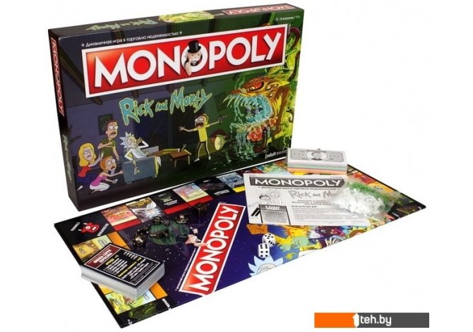| Информация | Ву-ба-лу-ба-дуб-дуб!Присоединяйтесь к Рику, Морти и Смитам. Покупайте, продавайте и обменивайте локации в Мультивселенной, включая Измерение Кромулона, Газорпазорп и Планету кота Сквончи (ну и, конечно, не обошлось без мест на нашей Земле). В комплекте коллекционные детали, Цитадели, Губл-боксы и многое другое! Это "Монополия" в духе Рика и Морти. |