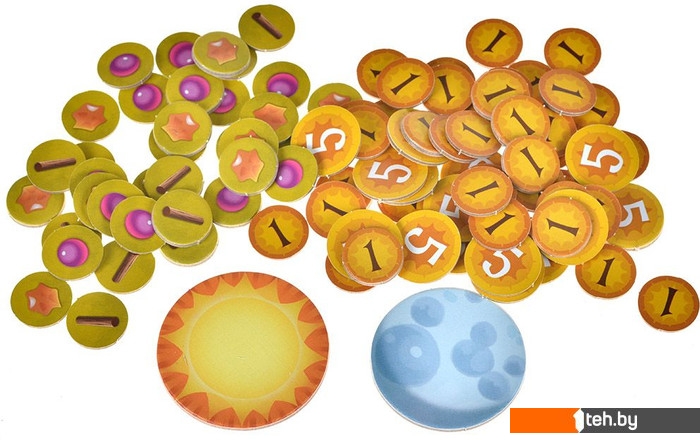 Комплектация | 4 планшета игроков 4 уникальных кубика ресурсов Восьмигранный кубик 12 фишек друзей: - 3 бабочки - 3 лисички - 3 ящерки - 3 мышки 60 карт 16 жетонов парада 2 жетона Луны и Солнца 55 жетонов победных очков 48 фишек ресурсов (ягоды, ветки и смола) Игровое поле Правила игры |