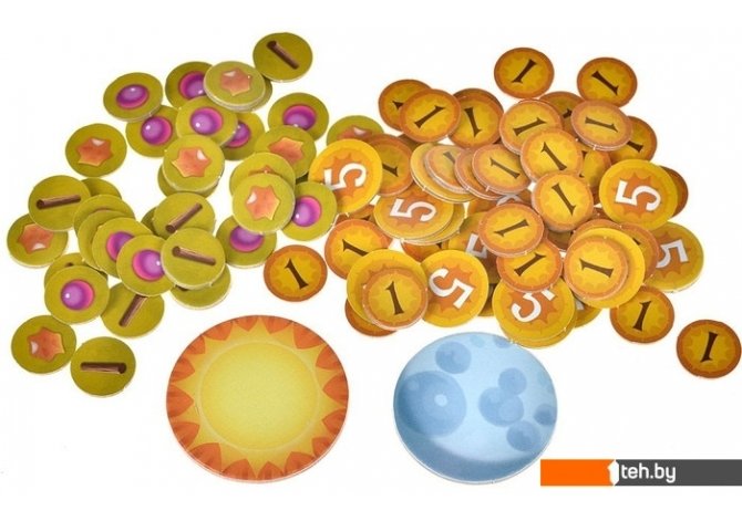 | Комплектация | 4 планшета игроков 4 уникальных кубика ресурсов Восьмигранный кубик 12 фишек друзей: - 3 бабочки - 3 лисички - 3 ящерки - 3 мышки 60 карт 16 жетонов парада 2 жетона Луны и Солнца 55 жетонов победных очков 48 фишек ресурсов (ягоды, ветки и смола) Игровое поле Правила игры |