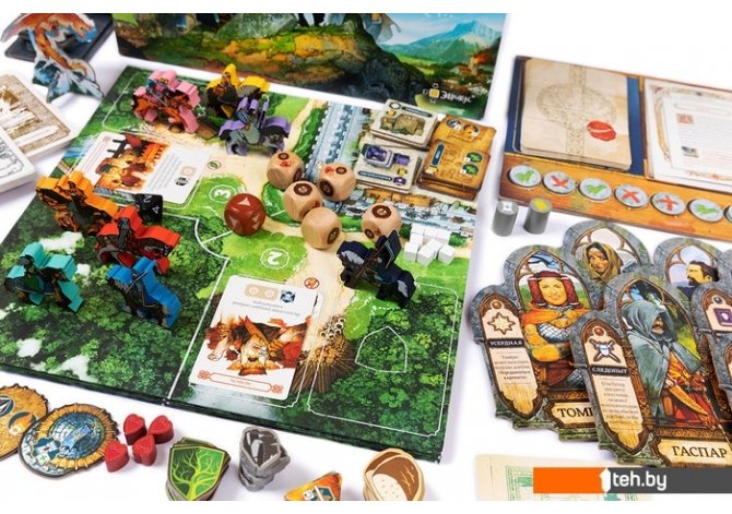 | Комплектация | -150 карт происшествий, событий и невзгод -69 карт летописей -11 карт миссий -28 жетонов построек и провизии -16 жетонов подвигов и заданий -8 жетонов щита -7 кубиков умений, приключений и поселений -30 фишек ресурсов -8 планшетов и фигурок рейнджеров -8 маркеров успеха -8 маркеров повреждения -3 фишки приключений, защиты и престижа -1 игровое поле и 1 поле историй -Специальные компоненты летописей |