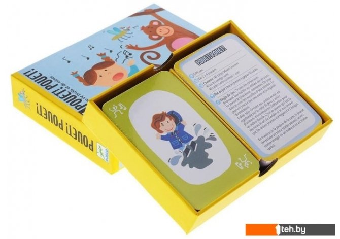 | Информация | Колода состоит из 120 карт, по 40 карт для трёх типов заданий. В зависимости от цвета карты необходимо использовать пантомиму, звуки или пантомиму и звуки вместе. Игроки берут карты из общей колоды по очереди и с помощью жестов или звуков изображают другим игрокам что изображено на карте. Если другие игроки угадывают, карта остаётся у игрока, если нет, возвращается в колоду. Для победы необходимо набрать 5 или 10 карт в зависимости от продолжительности игры. |