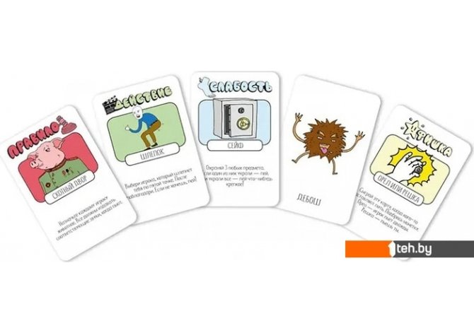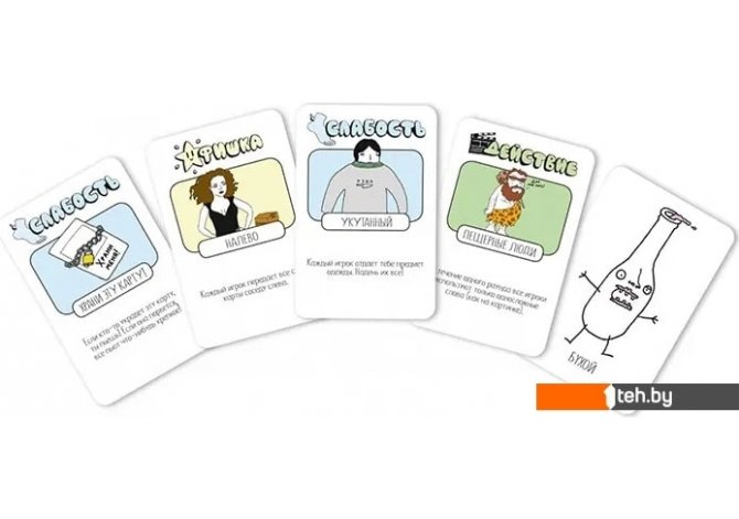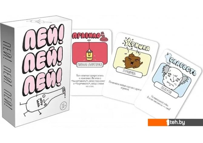 | Информация | Алкоголь – есть, веселая компания – есть, самая зажигательная настолка – тоже есть. К бурной вечеринке готовы! Пей! Пей! Пей! – это больше двухсот веселых заданий, безумных правил и сумасшедших выходок. То, что нужно, чтобы сделать пятничный вечер немного горячее. Пей! Пей! Пей!: чуть больше об игре Игра для тех, кто устал от однотипных фант и чувствует в себе силы попробовать что-то новенькое. Никаких сложных правил – все проще, чем выпить шот. Каждый ход вы тянете карту из колоды и делаете то, что на ней написано. А написано может быть самое разное. Карты бывают нескольких видов: среди них есть и действия,которые нужно выполнить сразу, и правила, которые действуют на всех игроков, и фишки, которые нужно хранить в тайне от всех и использовать в самый подходящий момент. Есть даже силы и слабости – например, кому-то придется говорить о себе только в третьем лице, а другой должен будет постоянно кого-нибудь трогать. |